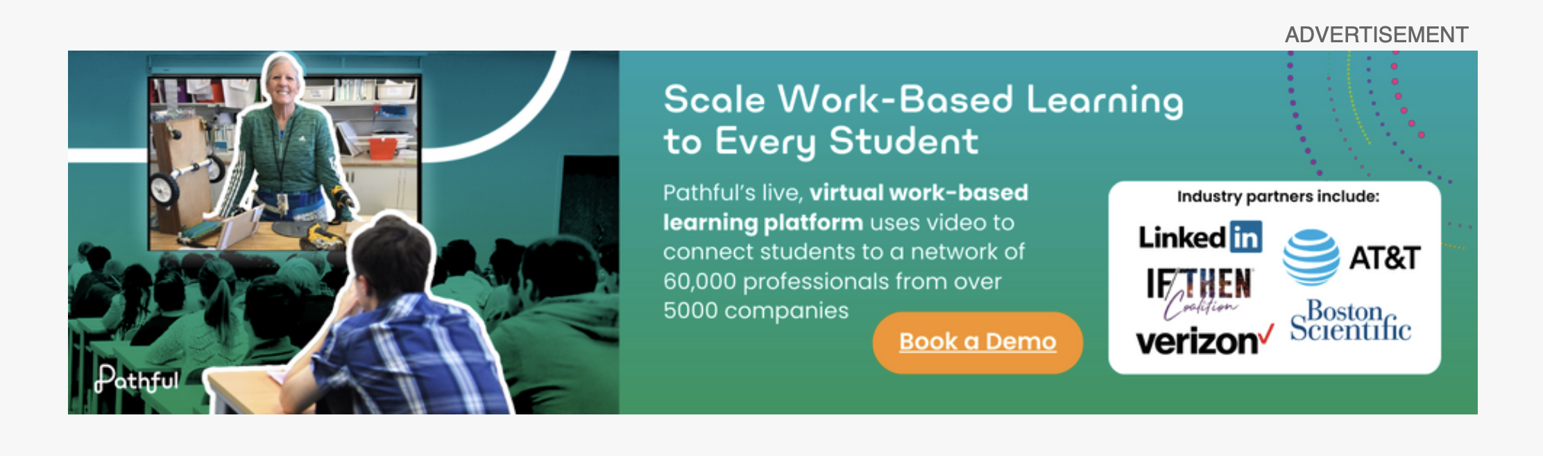 Pathful specializes in "virtual work-based learning" opportunites, so every student has access. To promote our offering, my team bought different ad units in a popular industry newsletter.