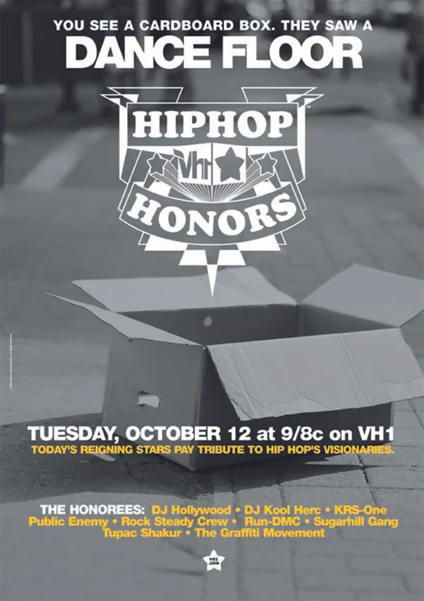 VH1 needed a marketing campaign to launch the first-ever Hip Hop Honors show, an annual TV special honoring old school rappers and other hip-hop contributors, so I was called in as a copywriter to help.